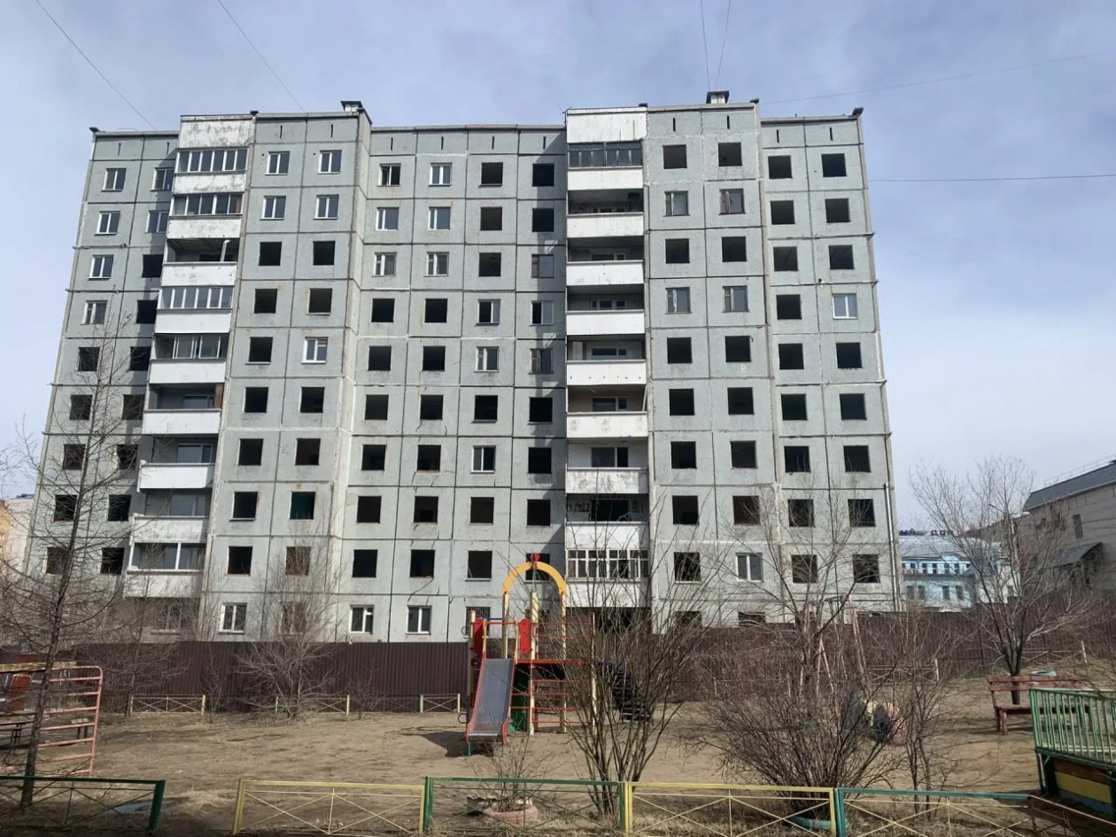 В микрорайоне Северный в Чите приступили к демонтажу окон и дверей в аварийном десятиэтажном доме №39, который будет снесён.
