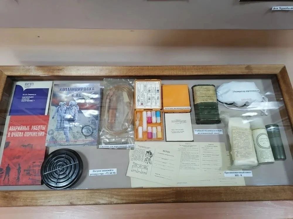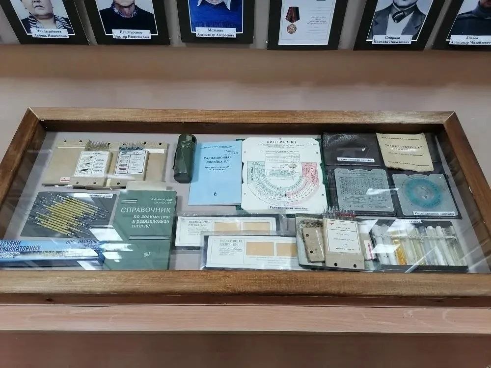 В экспозиции представлены уникальные архивные документы, фотографии, книги, средства индивидуальной защиты и дозиметрическая аппаратура того времени, в том числе счетчики Гейгера.